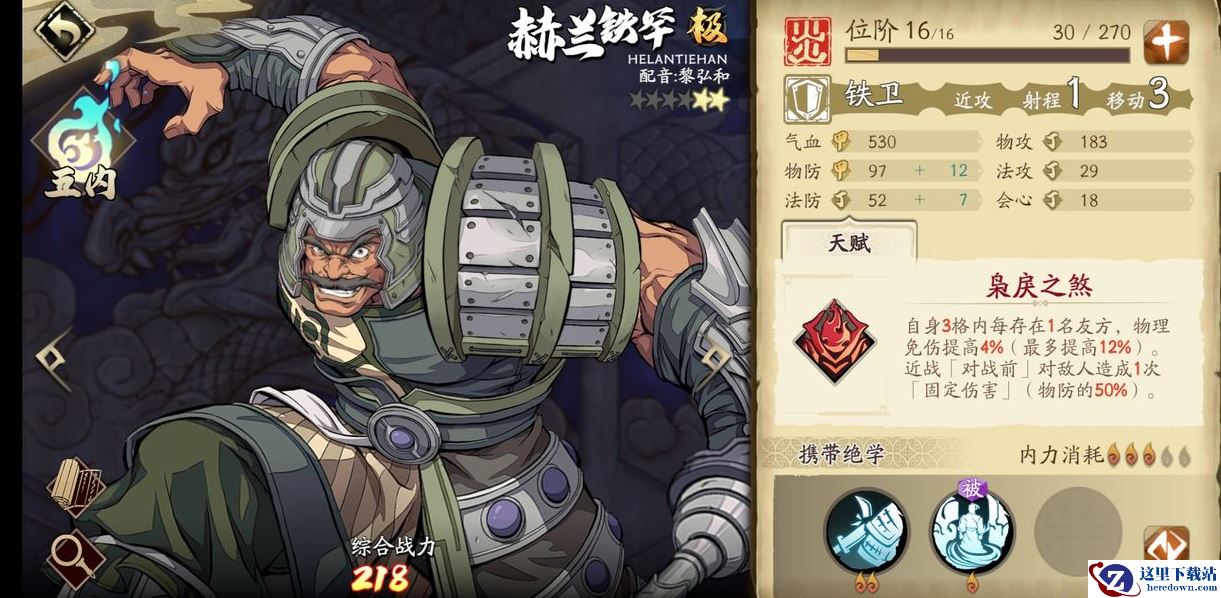赫兰本身2气力免伤40也是十分强势的技能,大招更是自我驱散加行动结束回血,就坦度和应急来说赫兰是合格的坦克。但是初期开荒赫兰面对的问题是伤害反伤不足,高等级创命和三途的表现一般,所以在有依依的情况下前期不推荐练。