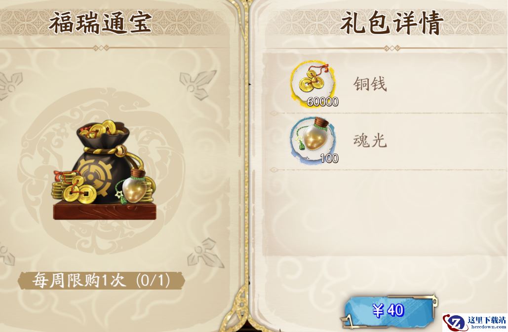 性价比与首充持平的礼包,建议只在凑1666或者铜钱、魂光紧缺的时候考虑。