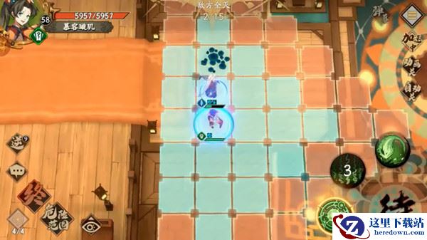 这一关需要我们在2回合内通关,整理的打法思路是第1回合先利用冰璃+慕容璇玑的配合干掉左下的4个敌人,然后上方一定要用古伦德的击退效果将皇甫申往左下方向进行击退,然后夏侯仪尽量对皇甫申造成伤害,第2回合待皇甫申靠近栏杆时,慕容璇玑再利用大招改变位置的特效将皇甫申与最后一个冰系的敌人移动到伏火雷旁边,接着利用冰璃的【冰华飞刺】引爆机关即可通关。