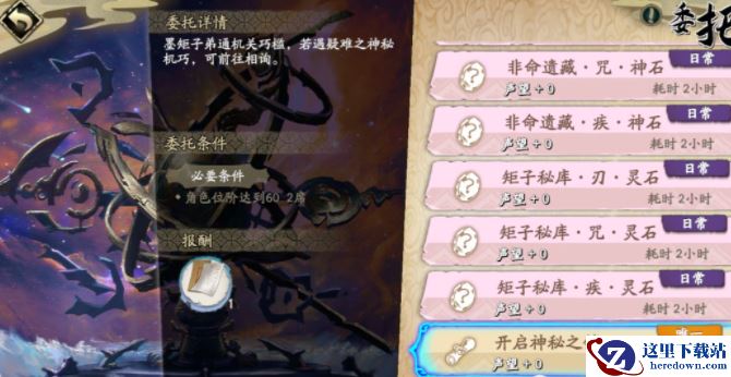 返回营地触发夏侯仪对话,开启隐藏关卡【幻碑遥忆】,看剧情成就奖励1抽卡券和矿石。