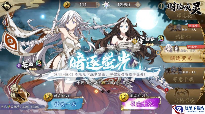 限定召唤暗逐萤光开启,绝品英灵黎幽&绝品英灵宇韶容召唤概率提升