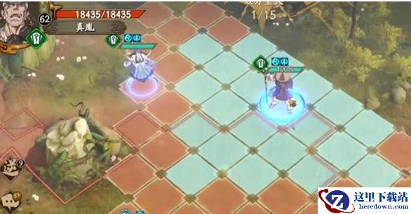 这关在开始时系统便为我们介绍,需要利用真胤的超高属性,来击杀位于地图下方的暗属性鬼卒,而想要做到这一点,我们需要2回合紫枫的加移动力,上官远的受伤为队友提升移动力,还有地图中央的蘑菇才能让真胤在2回合内走道鬼卒的面前,另外封寒月的生存能力很低,不要被鬼卒打到了,其中可以利用【踏雪前行】进行位移和对鬼卒进行移动力削减。