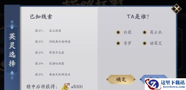 2、根据线索,我们可以猜到第一天的英灵是葛云衣。
