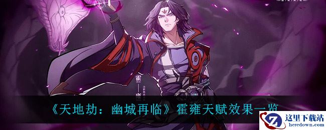 天地劫幽城再临即将上线全新绝品英灵霍雍。很多小伙伴都很想知道霍雍的天赋效果是什么,今天小编给大家带来了《天地劫:幽城再临》霍雍天赋效果一览,感兴趣的小伙伴一起来看看吧。