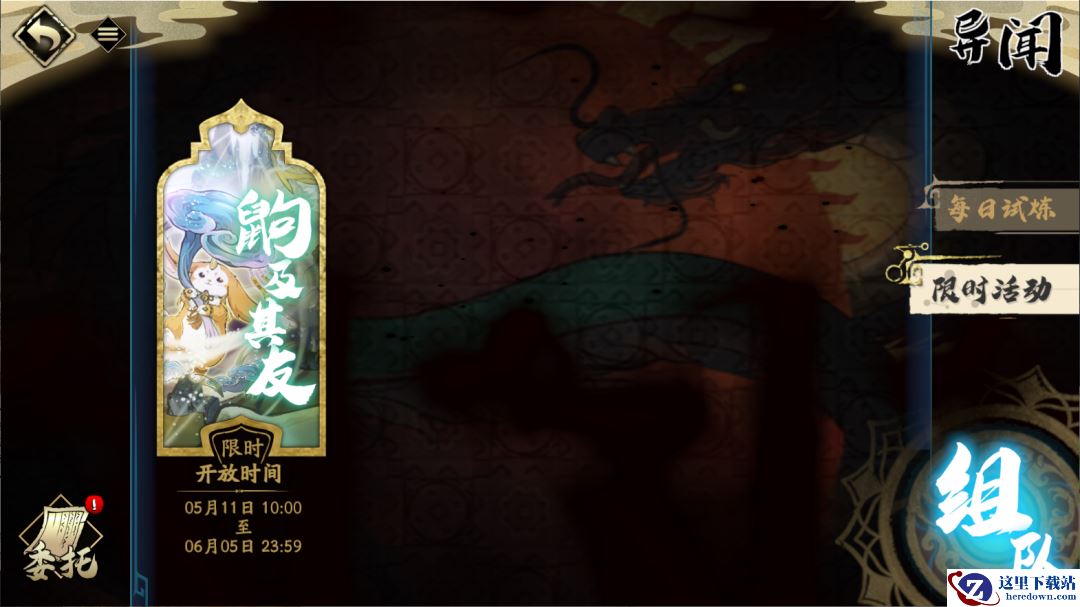 少侠们可在【异闻】-【限时活动】界面中前往参与!