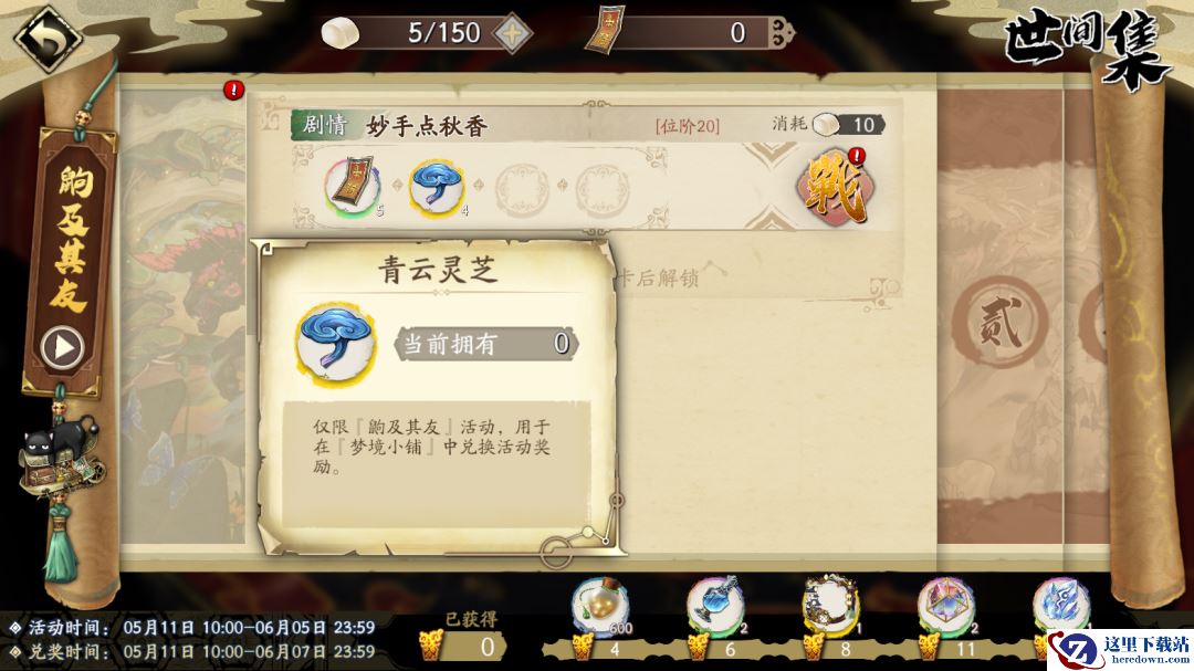 完成活动关卡获取活动货币「青云灵芝」「紫云灵芝」,可在活动商店兑换幻月散、浣魂露、神兵养成材料、御·太玄石、淬火及身材料包、辉·太玄石等丰富奖励