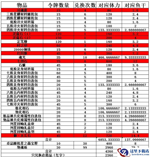 因为每个人的需求不一样,大家可以根据自己的需求和自己的鱼干来规划怎么清空商店。此表只是作为你们的参考。