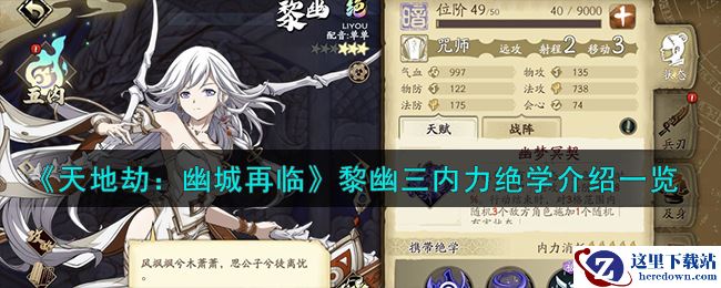 以上就是小编整理带来的《天地劫:幽城再临》黎幽三内力绝学介绍一览攻略,更多相关游戏攻略,请关注手游网!