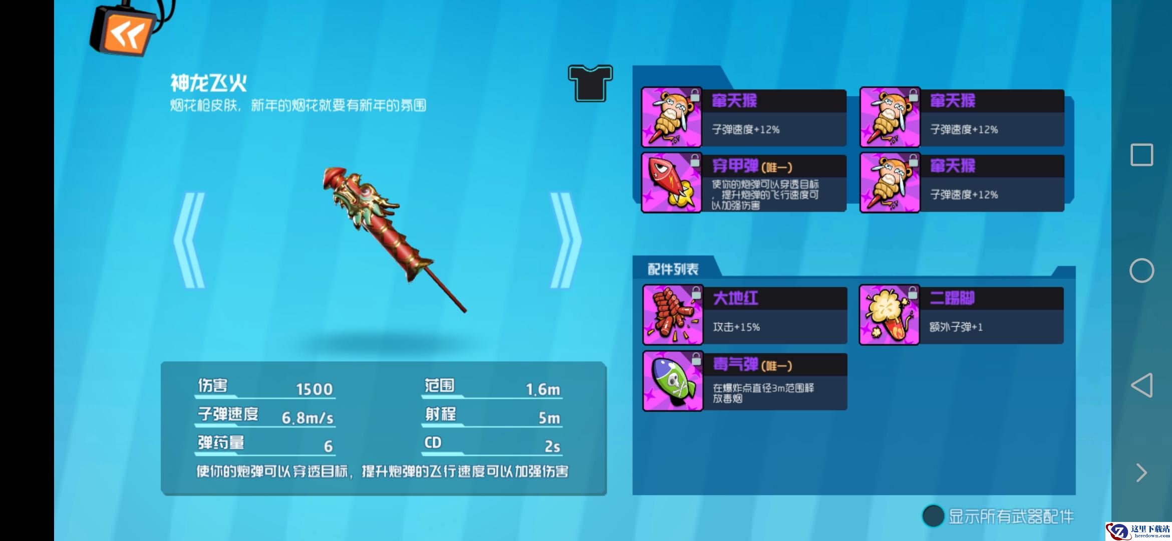 穿甲使烟花的伤害直接爆炸性增长,可以说是最强紫唯一之一。末制导虽能自动瞄准敌人,但太容易被躲。毒气弹在敌人无路可退时用最优,平常用容易误伤队友。二级助推感觉意义不大,依然容易躲。
