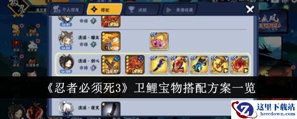 忍者必须死3卫鲤宝物怎么搭配?忍者必须死3里面很多人都想要培养下这个卫鲤了,那么给卫鲤搭配适合的宝物搭配就可以提升下这个角色的实力了,今天就给大家带来合适的方案了,这样大家搭配的时候就会简单很多了,来看看吧!