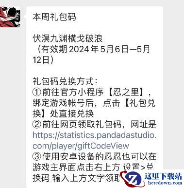1、前往官方小程序[忍之里]绑定游戏帐号后,点击[礼包兑换]处直接兑换