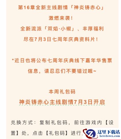 7月1日-7月6日礼包码:神炎铸赤心主线剧情7月3日开启