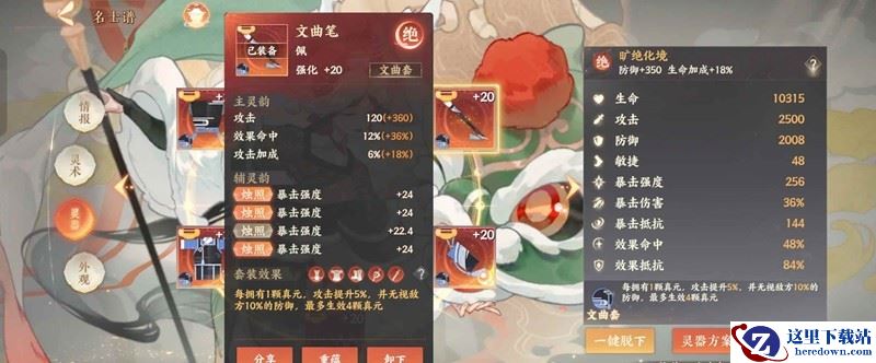 其中衣帽鞋配都洗双风华,武器不洗风华全部洗暴强,因为梁花对暴击强度的要求比较高,不暴击的话基本是没伤害的。
