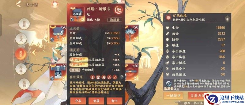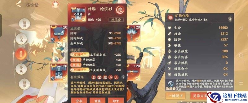 装备参考主灵韵为衣帽一件生命加成一件防御加成,鞋子爆伤,配饰武器暴强。装备洗练属性要求面板防御4500+,暴击强度280+,从而达到孙悟喽的增伤标准。