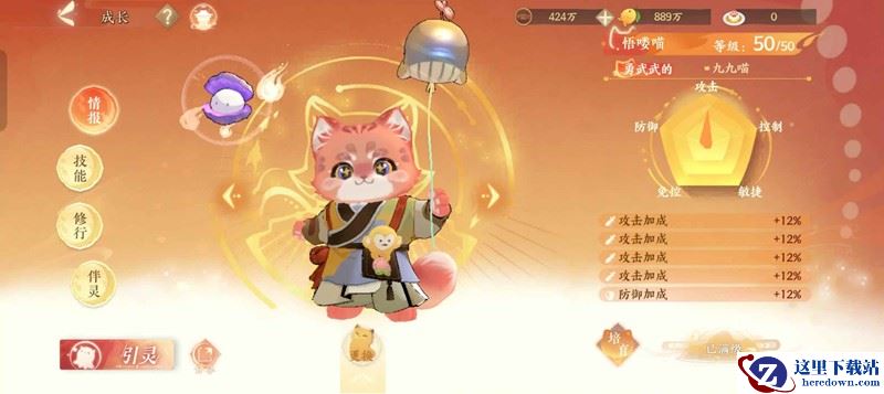 猫属性我选择了四攻击加成一防御加成(凑防御数值),配合满阶九世灵,面板攻击力也是成功达到了1w+。