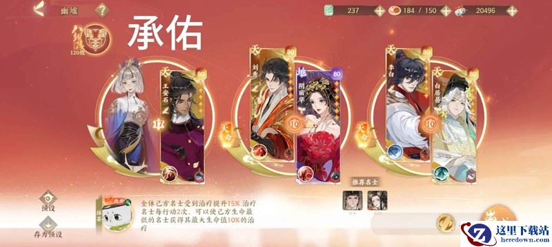 流血队用洛书阵,名士星级低所以对应的灵器要求比较高,可以从主队身上扒,对面觉醒伤害高需要治疗量高的名士,治疗不能太脆,尽量不要让名士退场