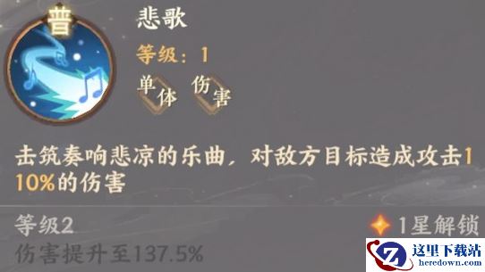 在《忘川风华录》手游中高渐离是一位地属性的辅助角色卡。普攻技能“悲歌”可以对敌方造成攻击110%的伤害,技能提升到lv3该伤害比例提升至165%。
