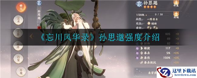 忘川风华录中有很多人物供大家进行搭配阵容,孙思邈在游戏中是一位玄级辅助人物,今天小编给大家带来了《忘川风华录》孙思邈强度介绍,感兴趣的小伙伴一起来看看吧。