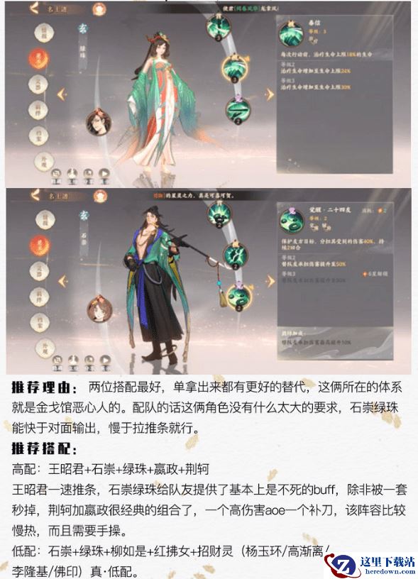 这两位是一个辅助型的名士,可以降低对手的攻速,抢先手必备