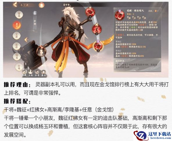 干将比较适合灵器副本礼,在金戈馆使用也比较好。