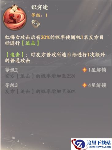 红拂女攻击后有20%的概率使随机1名友方目标进行[追击]