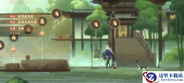 在最左边灯笼处获得竹刀,中间泛红的罐子用来加鹿角霜,得到琴漆,之后进入幻境,把琴漆交给嵇康,他会让玩家去找琴徽