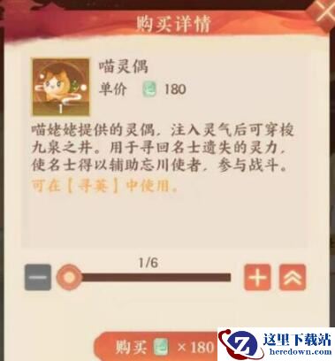 喵灵偶是喵姥姥提供的灵偶,注入灵气后可穿梭九泉之井。