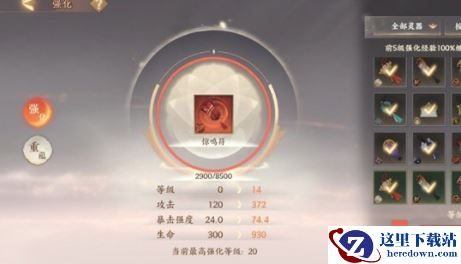 4、进入到装备的强化界面以后,只需要再次点击【强化】选项就能够完成灵器的强化了。