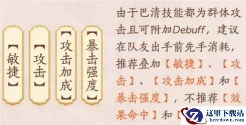 推荐巴清的特点是群体攻击伤害系数高,需要群攻型输出。巴清更适用于群体型副本和PVP,单体BOSS不建议带巴清。