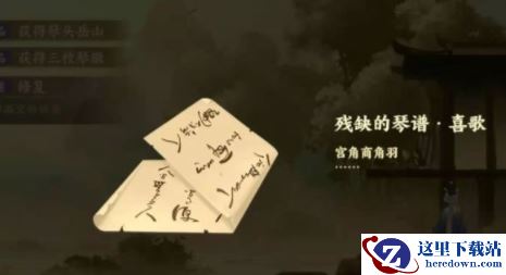 十三枚琴徽,缺少了3/5/8。所以在梦境中的寻找琴徽的盒子,输入358。就会获得琴谱:喜歌-宫角商角羽13235。