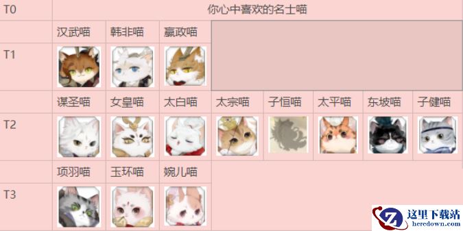 T2:谋圣喵、女皇喵、太白喵、太宗喵、子恒喵、太平喵、东坡喵、子健喵