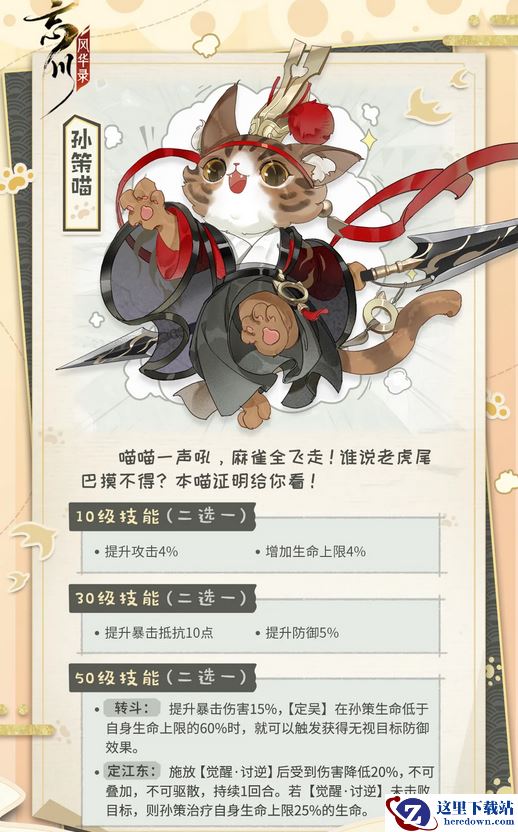 以上就是小编整理的关于《忘川风华录》孙策喵技能属性介绍的全部内容,想获得更多相关游戏攻略可以关注手游网。