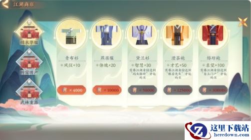 玩家可以在锦衣华服、绮窗绣户、武林重器这三个商店中购买相应的道具。来提升自己的江湖气质