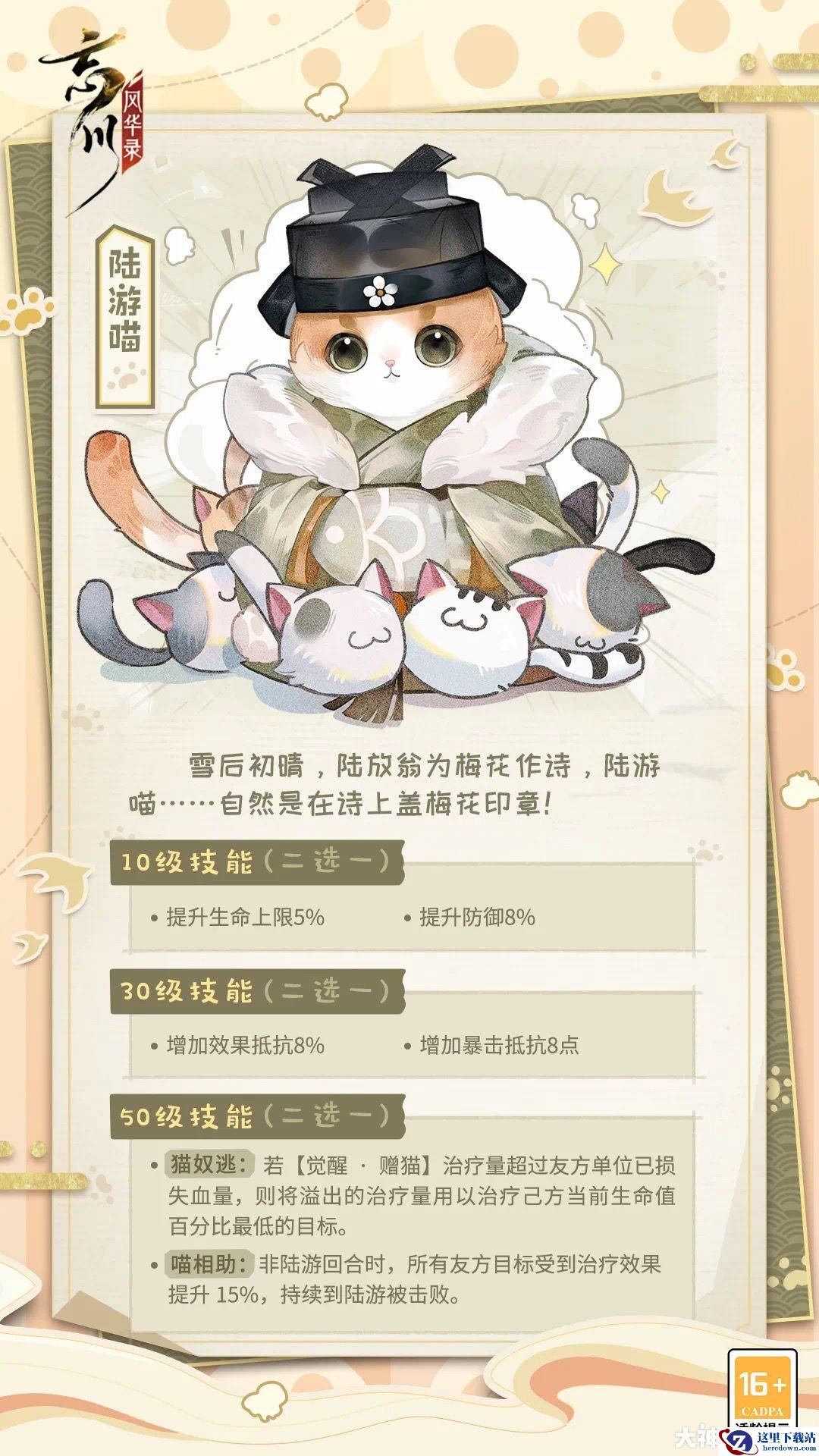 忘川风华录游戏中很多玩家还不清楚,陆游喵的技能如何选择搭配比较合适。接下来就让小编给大家带来《忘川风华录》陆游喵技能选择推荐。感兴趣的小伙伴们一来看看吧。