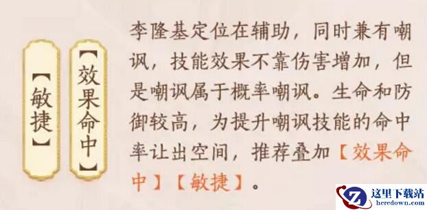 李隆基上场的主要位置在于嘲讽,需要灵器辅助提升嘲讽概率。组队搭配可以首先考虑天命进行搭配增加队伍的存活率,延长需要热机的队友存活回合数获得热机时间。