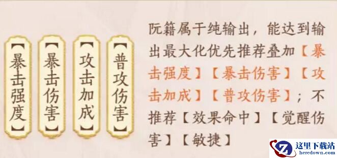阮籍嵇康睡杀二人组,两个人都有的话一定要搭配着用,他们的输出和控制效果可以发挥到极致前期来说阮籍的群体普攻伤害系数一般,中规中矩。