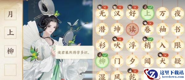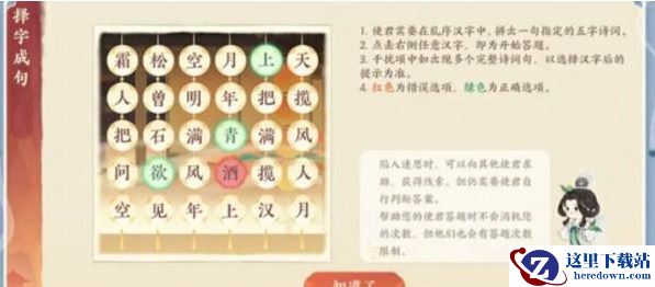 1、首先我们进入忘川风华录游戏择字成句关卡以后,先随意点击右侧的文字,红色为错误,绿色为正确。