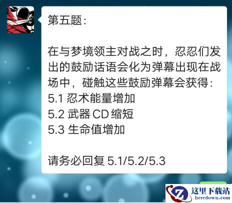 以上就是小编整理带来的《忍者必须死3》2020年6月月考【在与梦境领主对战之时,忍忍们发出的鼓励话语会化为弹幕出现在战场中,碰触这些鼓励弹幕会获得】答案介绍,更多内容,请点击关注手游网,小编将持续为您更新!