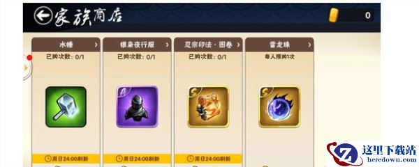 新手玩家需要忍阶达到中忍之后才能开通家族权限。点击家族旁边的商店按钮就能进入到家族商店界面,在商店界面的礼品都是可以进行兑换的,但是兑换的商品物品需要家族任务里面获得。