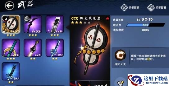 这把武器外观是非常炫酷的,芭蕉扇也是很多玩家喜欢的武器,而且分数加成也是相当高,32级已经100%分数加成了,在技能方面也是非常强力的,向前方释放火焰龙卷风,而且冷却时间也是比较短,32秒在SSR武器里面算是短的了,大家有能力尽量搞一把这个武器。
