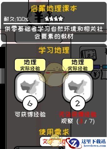 同一个道具/玩具,使用它将使你获得多种技能经验,具体1~3种及经验获取速度取决于道具品质(有限随机),但一些技能经验的获取有前置条件,例如下图的八卦需要想象和气质,地理额外经验需要观察能力,所以人物学习能力受天赋以及其他技能等级的影响更加突出。