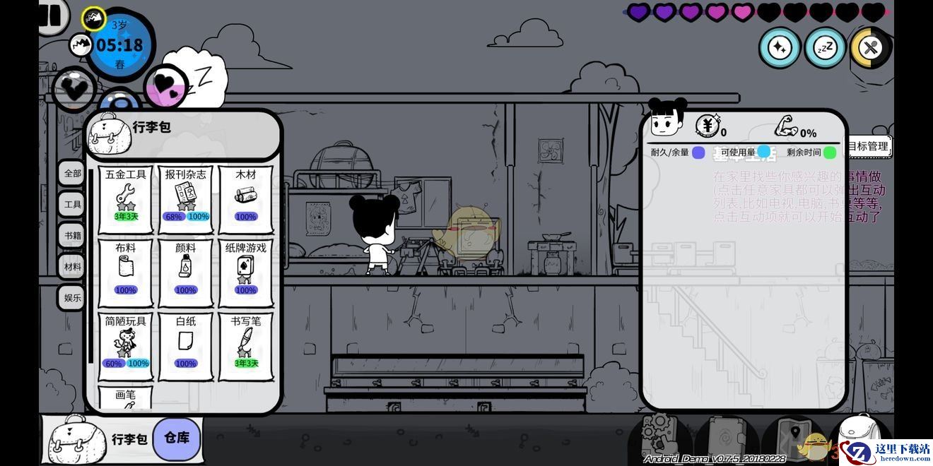 (五金工具+报刊杂志+木材+布料+颜料+纸牌游戏+简陋玩具+白纸+书写笔+画笔)