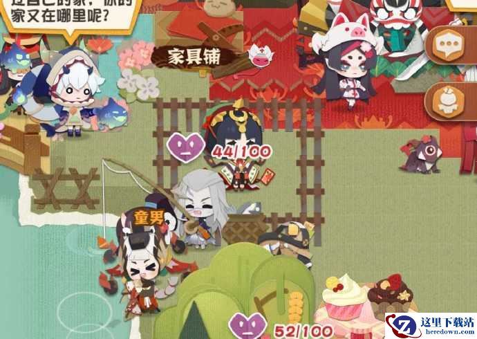 2.钓鱼工位和彼岸花海之间圈个圈圈住童男。