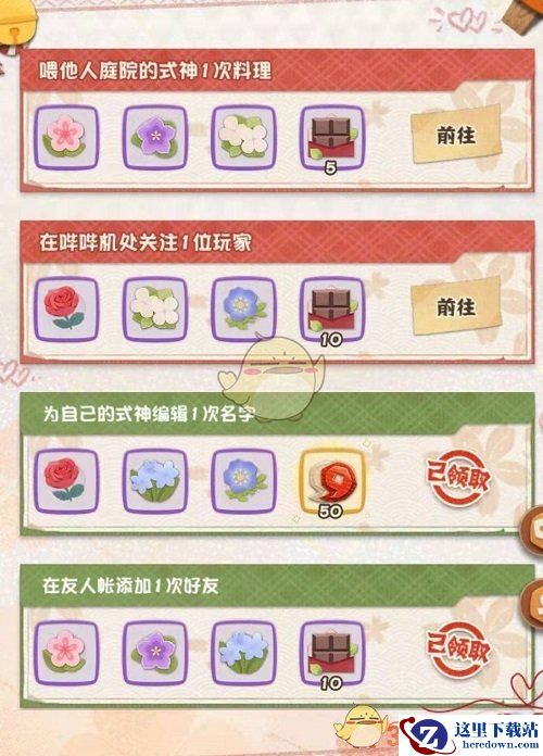 2、完成缘结任务则可以获得3种花束与巧克力或者勾玉奖励。