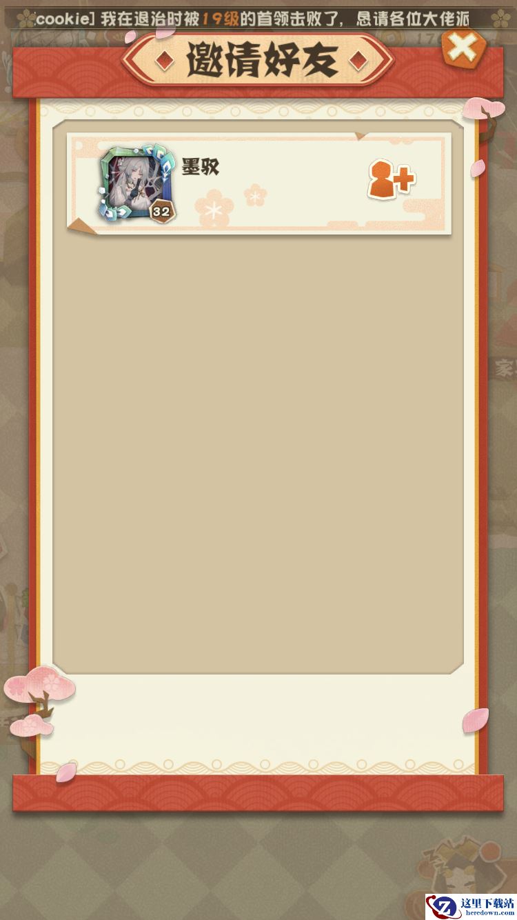 除过安排自己的崽去工作外,我们也可以邀请好友来协助工作。每个工作岗位旁边都会有一个加号的标志,点击后会出现可邀请的好友列表,选中一个好友发送邀请,在他同意之后,他的崽就会来我们庭院工作。