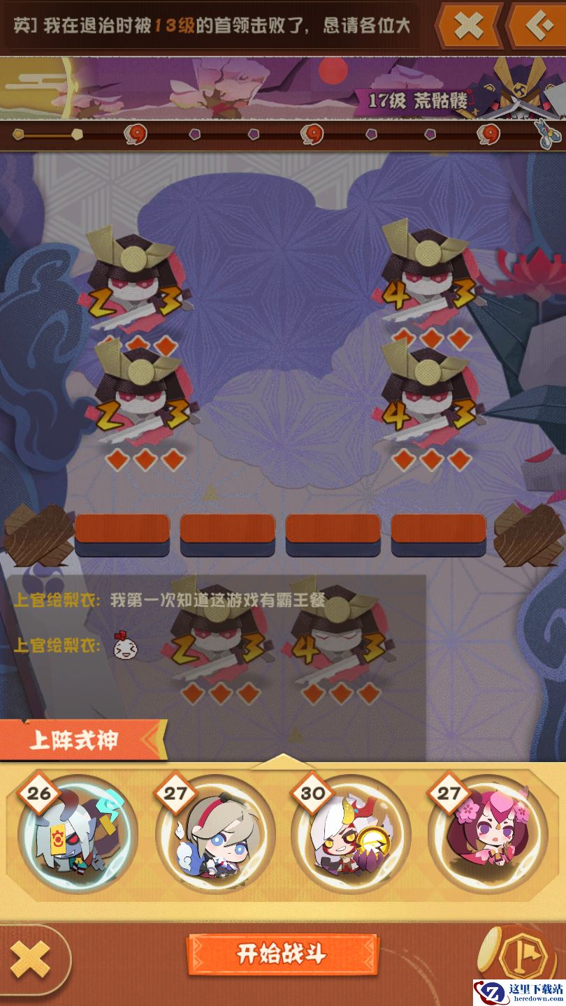 在开始战斗前需要点击右下角的编队按钮配置自己的式神队伍,挑选自己最强力的式神,配置好四个式神后就可以正式进入战斗。