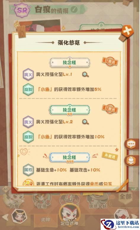 比如樱花妖、大天狗、海坊主等都可以在居酒屋打工时增加获得“赞”的效率。将这些式神放在对应的工作岗位,就是快速获得“赞”的最好方法。而且通过天赋强化,增加好感等操作,还能进一步提升式神打工的效果。