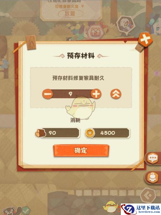 最后就是安排它干活!预存木材可以让熊本熊主动修理损坏的家具,同时也可以完成它的亲密度任务,一举两得。
