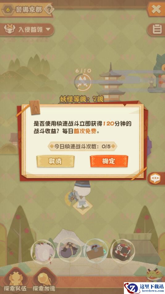 9、如果想要更快地收取一波食材,也可以选择快速探索,立即获取当前队伍120分钟的探索收益,每天都有5次机会,且第一次是免费的,一定要要记得使用,不要浪费哦。