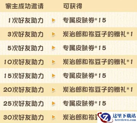 主要有专属皮肤券、炭治郎和祢豆子的赠礼